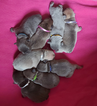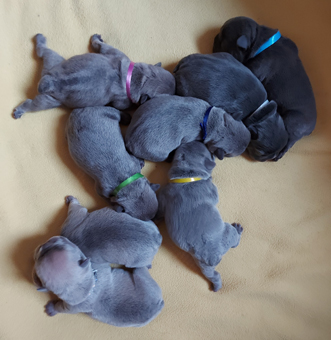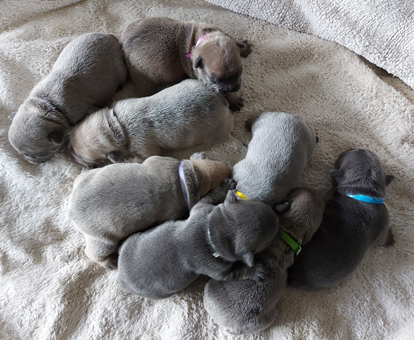 (Hündin lila Band)- Farbe blue fawn mit 6 Wochen