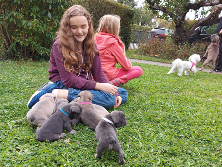 und leben mit unseren Kindern, Hunden und Katzen im Süden Deutschlands,